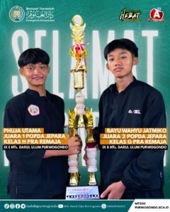 Jepara — Kabar membanggakan datang dari ajang kompetisi olahraga pelajar bergengsi, Pekan Olahraga Pelajar Daerah (POPDA) Jepara 2025. Dua atlet muda dari MTs Darul Ulum Purwogondo, Phuja Utama dan Bayu Wahyu Jatmiko, sukses mengukir prestasi gemilang dengan membawa pulang gelar juara.