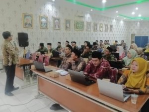 Ketua KKMTs 02 Jepara, Achmad Makhali, dalam sambutannya memotivasi peserta pelatihanagar semangat mencari ilmu.