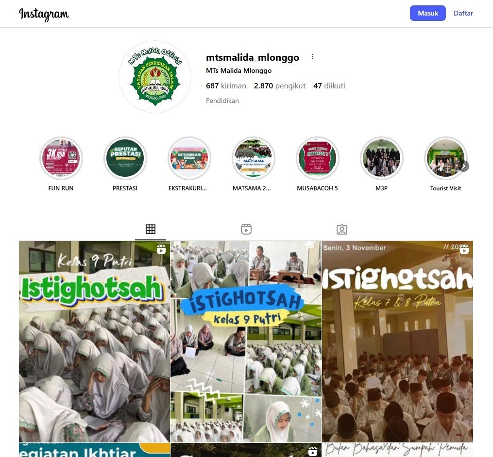 Melalui media tersebut, madrasah menyebarkan informasi kegiatan, prestasi, serta pengumuman penting secara cepat dan transparan. Pemanfaatan media digital ini menjadi bukti komitmen madrasah dalam menghadirkan layanan informasi yang modern, terbuka, dan inspiratif di era teknologi.