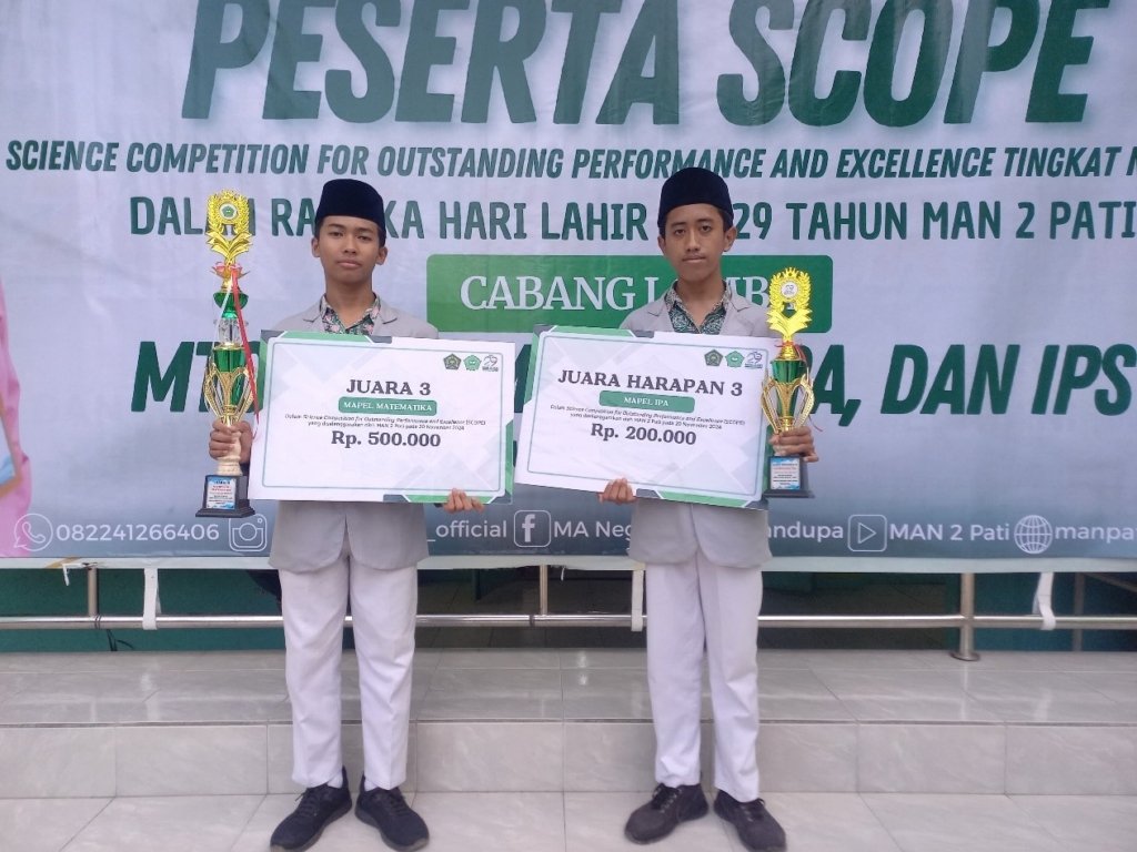 | 7 | SCOPE (Science Competition For Outstanding Performance and Excellece) | Juara 3 | Mapel MTK | Nasional | 2024 |