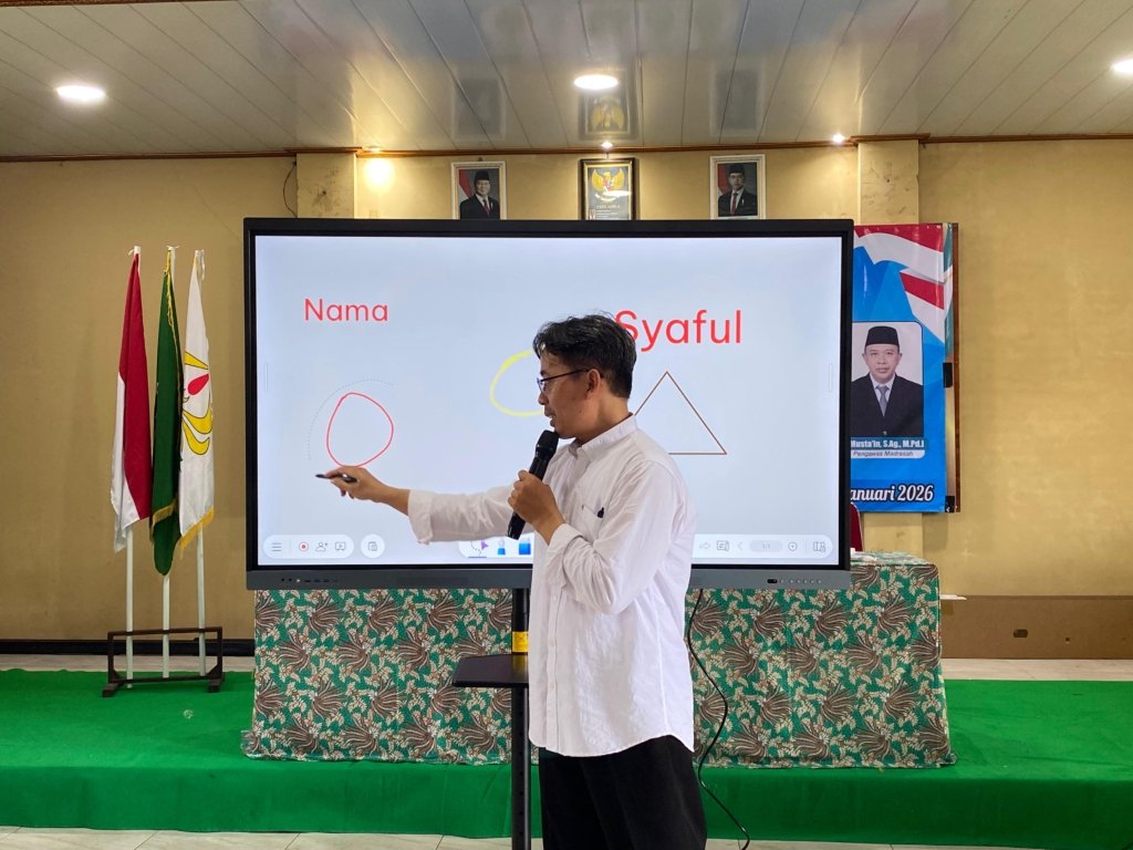 Sowan Kidul – MTs-MA Safinatul Huda terus berkomitmen melakukan transformasi teknologi dalam dunia pendidikan. Setelah sukses menggelar kegiatan Bedah Instrumen Akreditasi serta pendalaman Kurikulum Berbasis Cinta, para pendidik di lingkungan madrasah tersebut kini beralih memperdalam keterampilan teknologi digital melalui pelatihan penggunaan _SmartBoard_, Senin (19/1/2026).